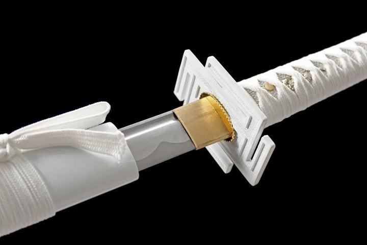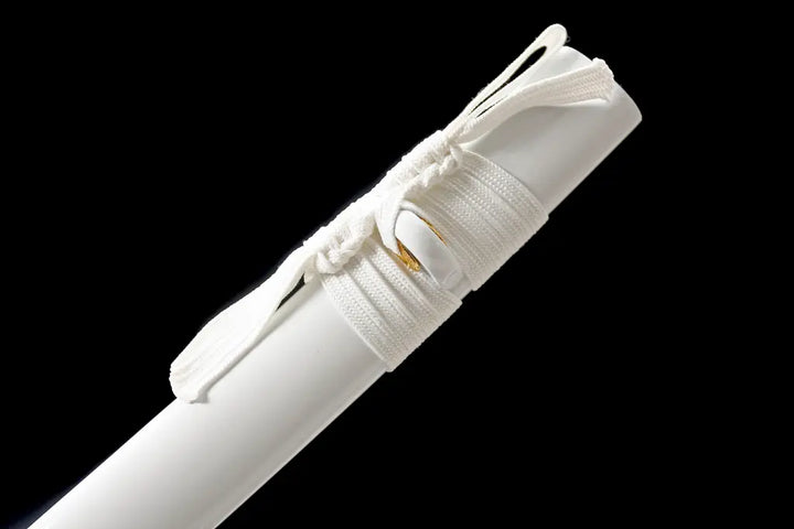 Scabbard (Saya) | Glossy white lacquered wood with matching white sageo |