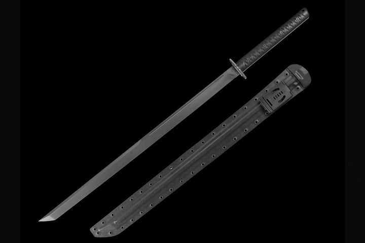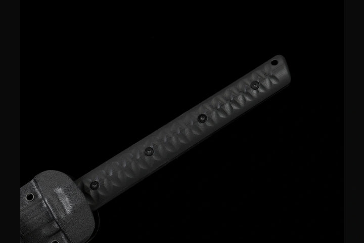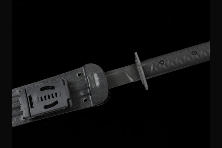 - Tactical saya with belt clip and rivet holes for multiple carry options