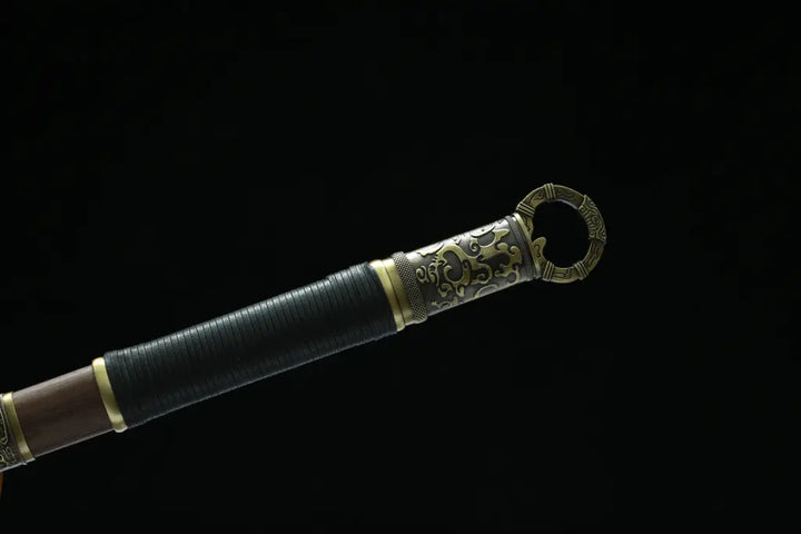 - Authentic Bu Liang Ren inspired Tang-style dao with a concealed handle — when sheathed the grip tucks cleanly inside the saya for a continuous, staff-like silhouette.