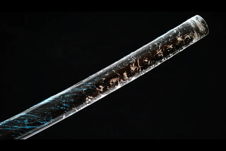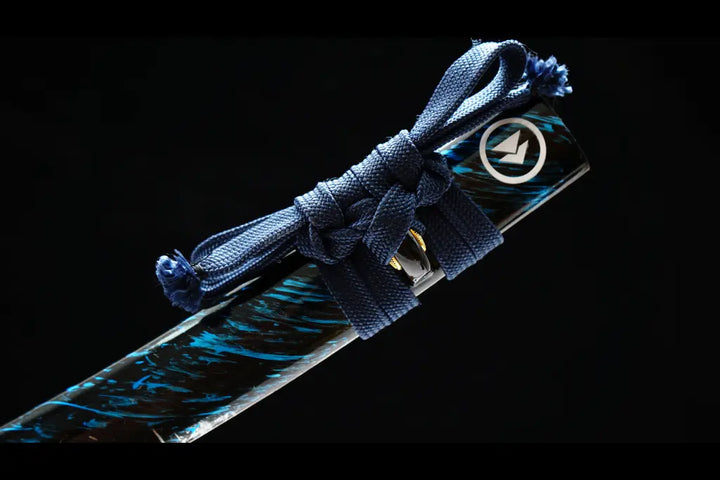 - Blue swirl lacquer saya with silver-plated mountain accents