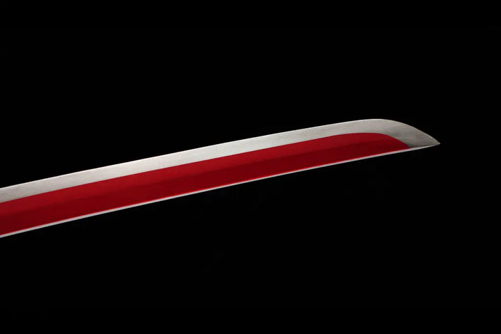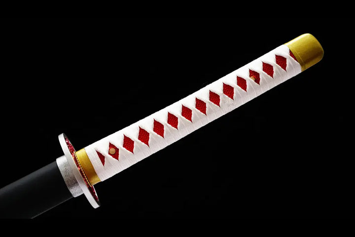 - Červený a biely vzor tsuka-maki s thematically prispôsobenou pochvou